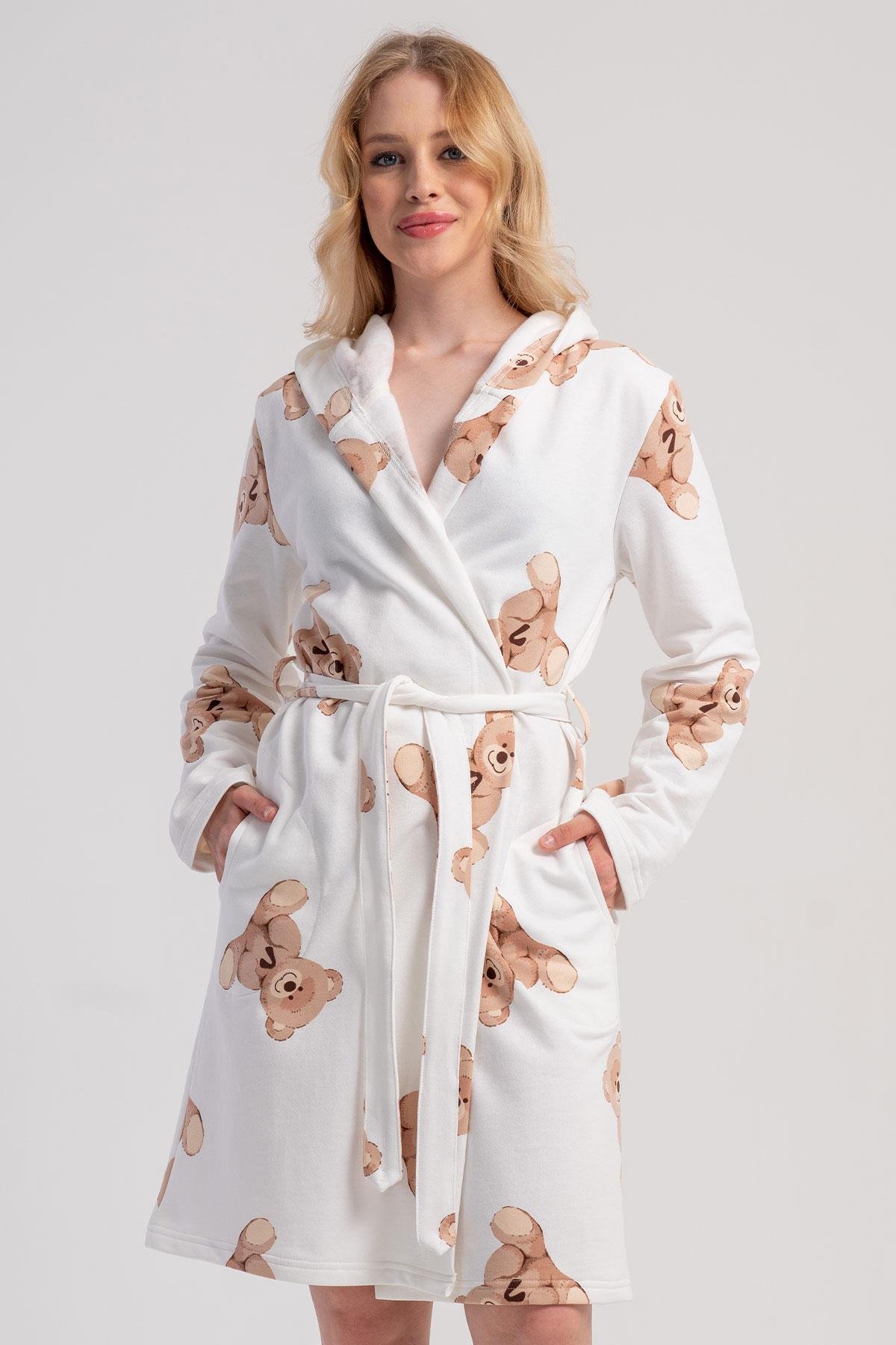 Vienetta 5021690566 Kadın Kapşonlu Uzun Kol 2 İplik Sabahlık