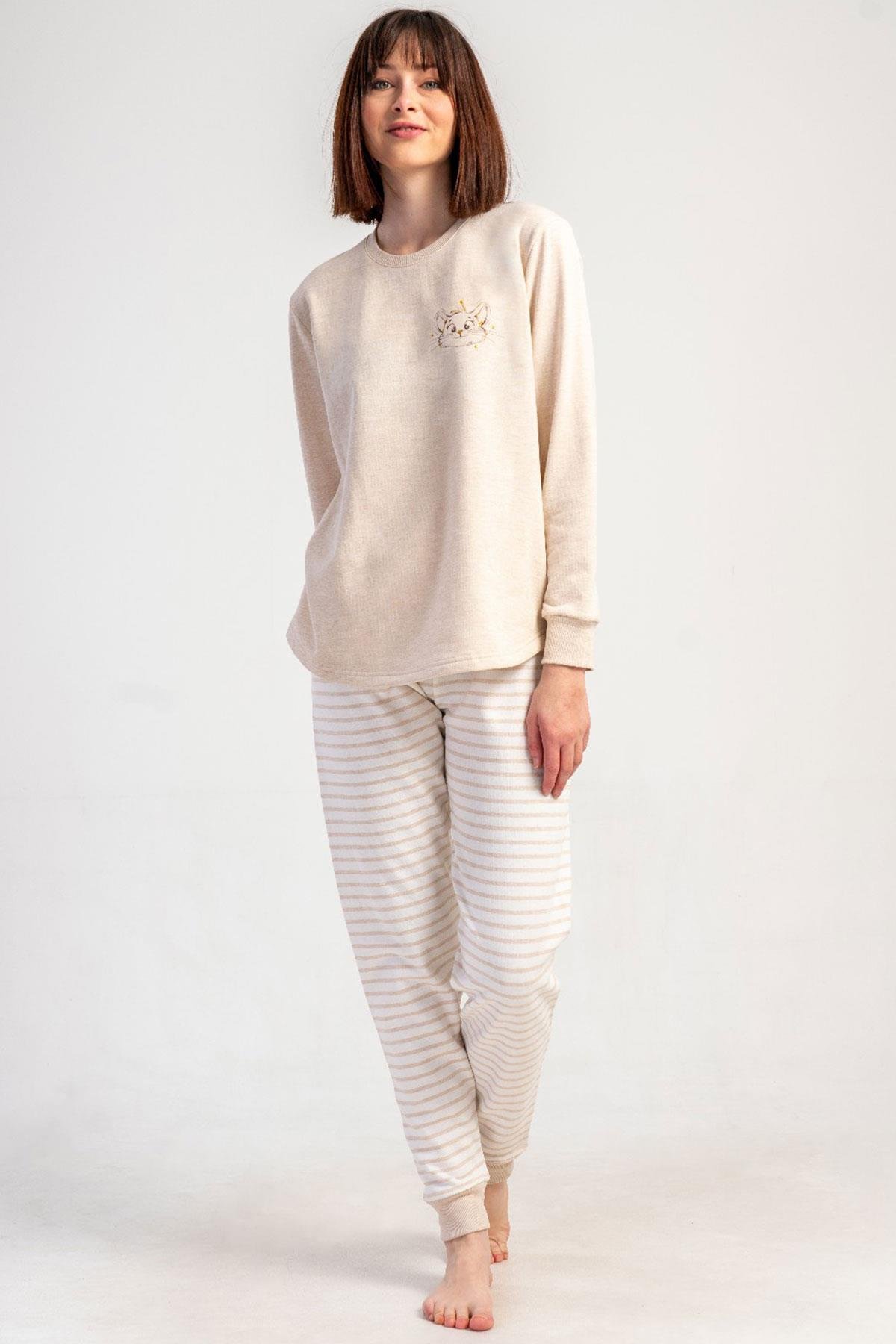 Vienetta Bej Kadın Uzun Kollu 2 İplik B.B. Pijama Takımı (VNT000000000847)