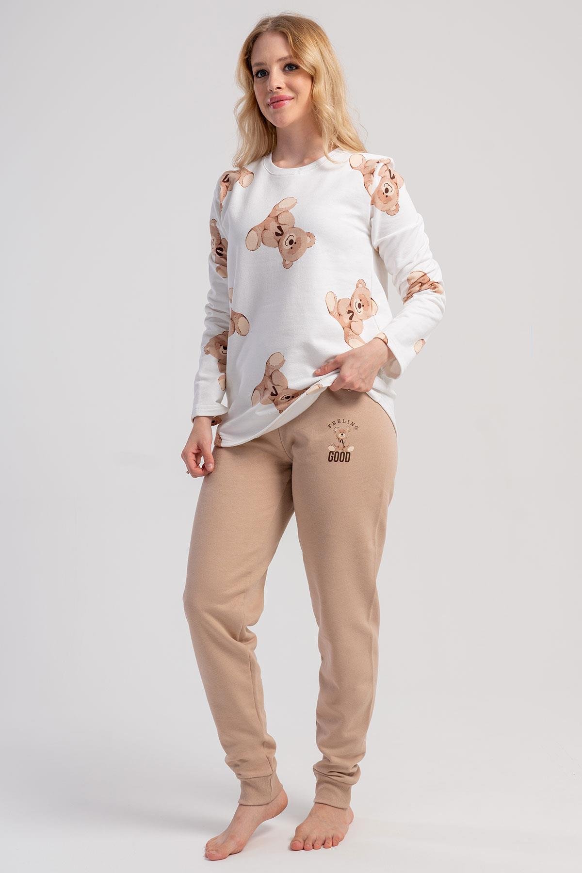 Vienetta Bej Kadın Uzun Kollu 2 İplik Pijama Takımı (VNT000000000843)