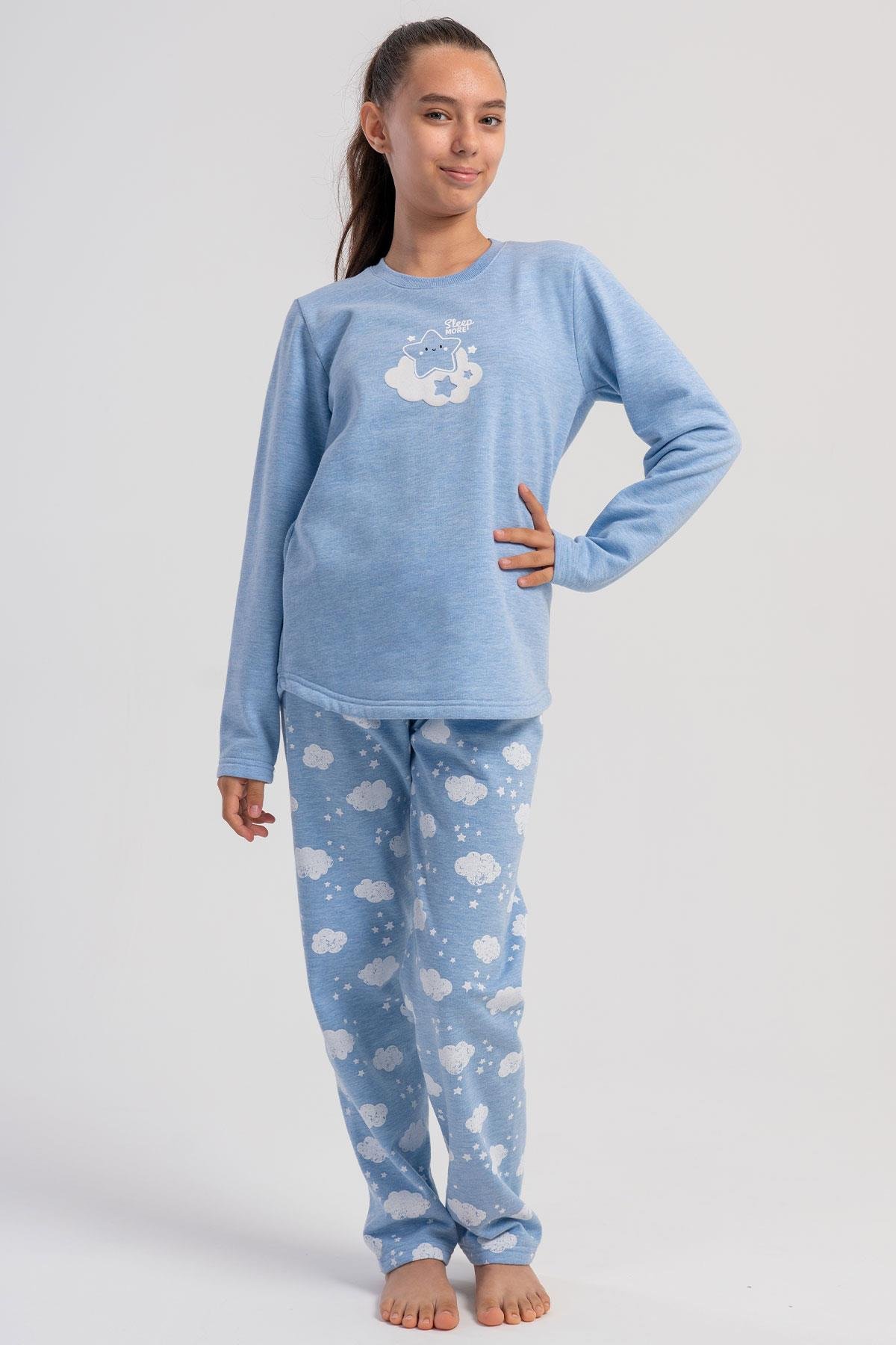 Vienetta Kids Mavi Kız Çocuk Uzun Kollu Pijama Takımı (VNTKDS000000002)