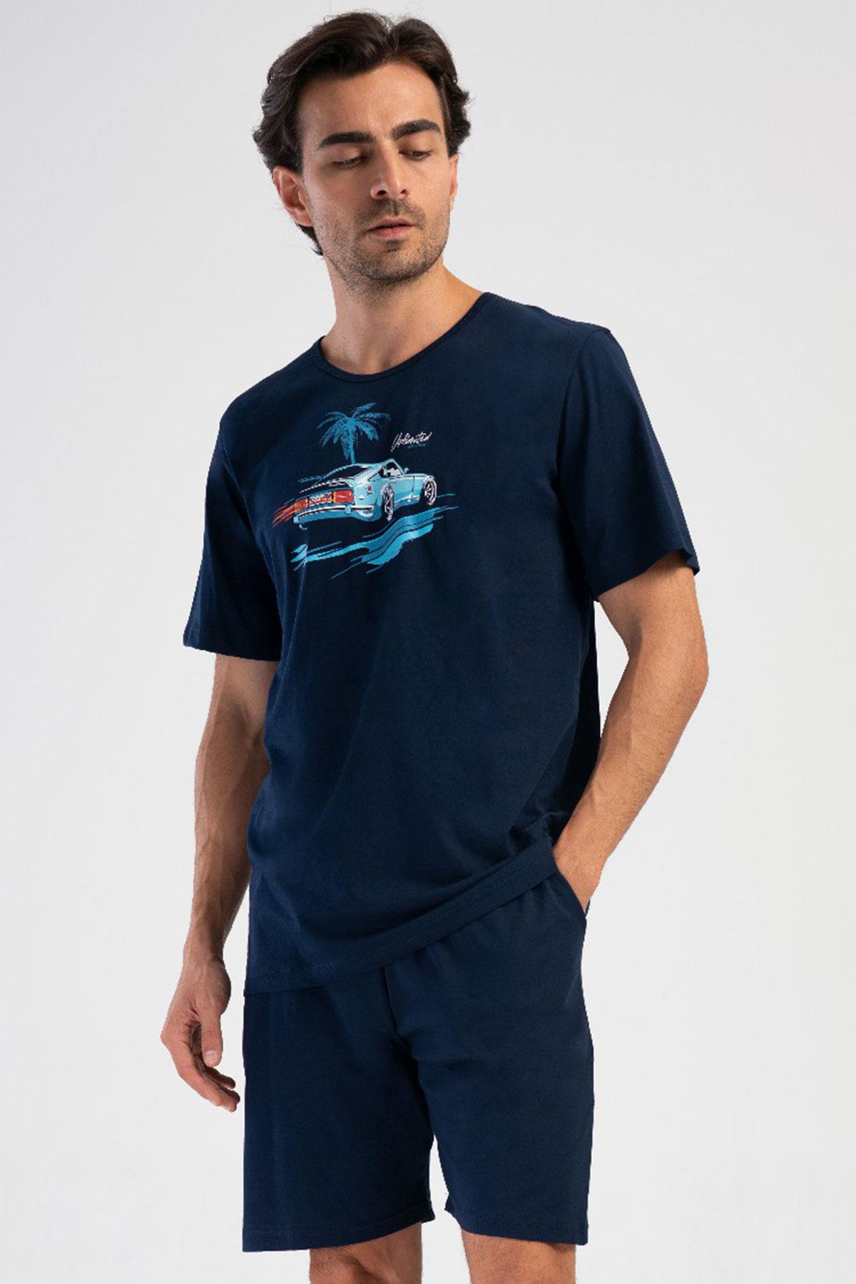 Vienetta Lacivert Erkek Kısa Kollu Şortlu B.B. Pijama Takımı (VNT000000000781)