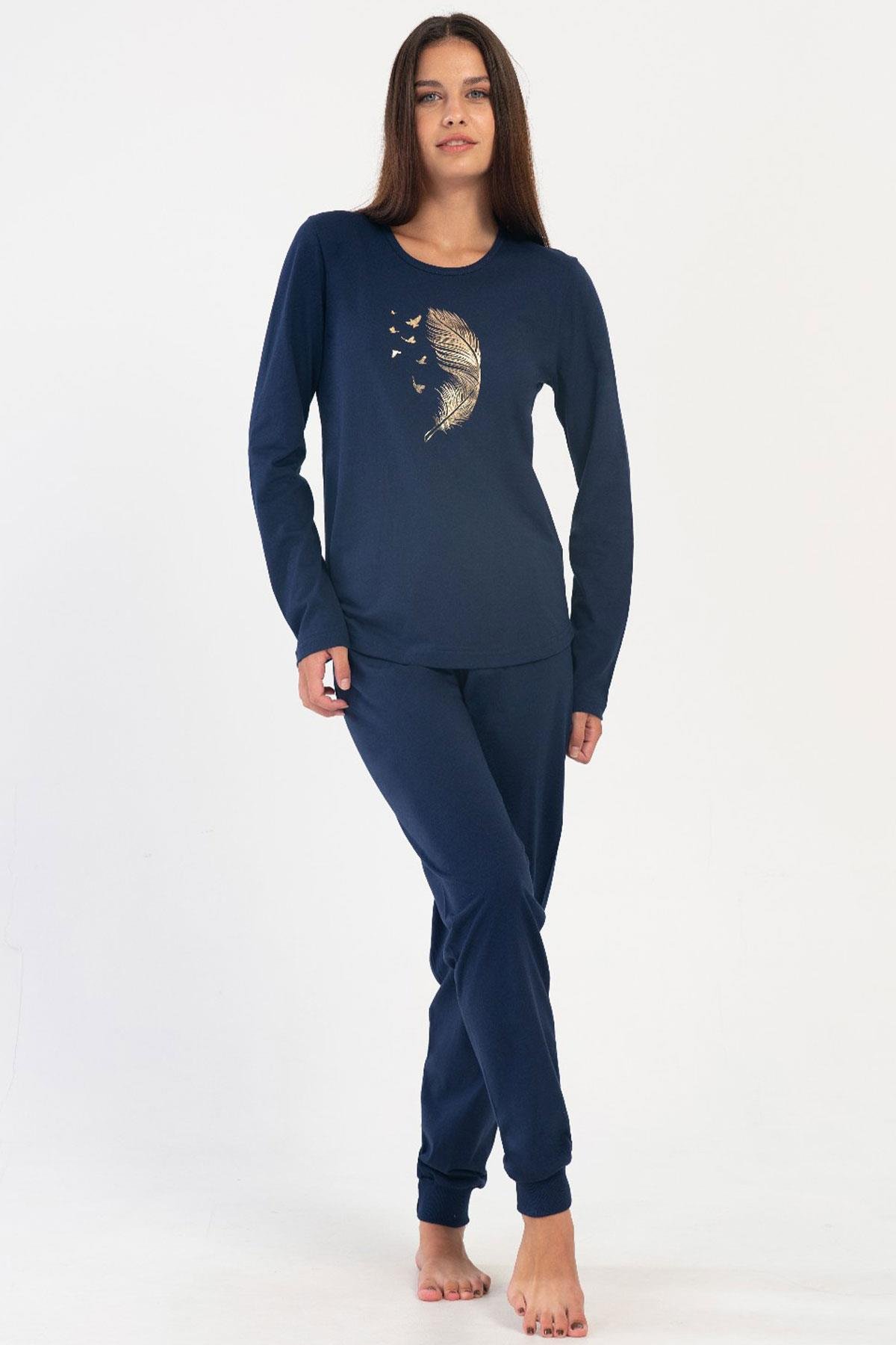 Vienetta Lacivert Kadın Uzun Kollu B.B. Pijama Takımı (VNT000000000851)